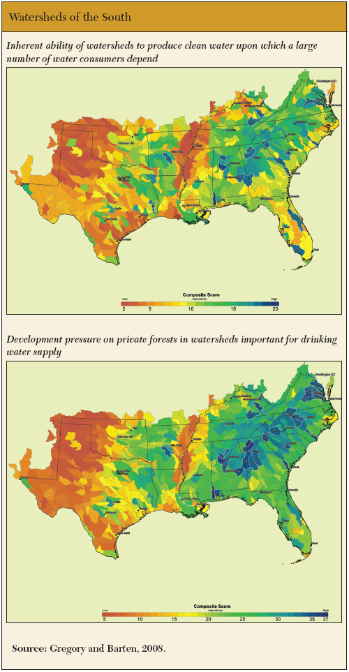 However, these services that forests provide are threatened. In the southern United States, suburbanization has put forests, and thus the region’s clean water supply, at risk.