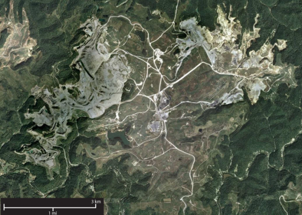 High resolution satellite image of a mountaintop removal mining site west of Vest, Kentucky.Scientists Speak Out